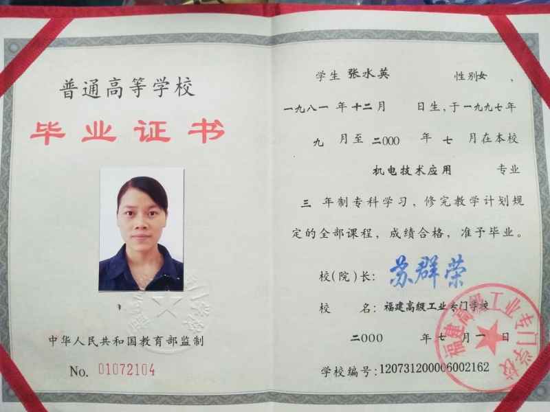 | 民 族: | 漢 | 政治面貌: | 群眾 | |